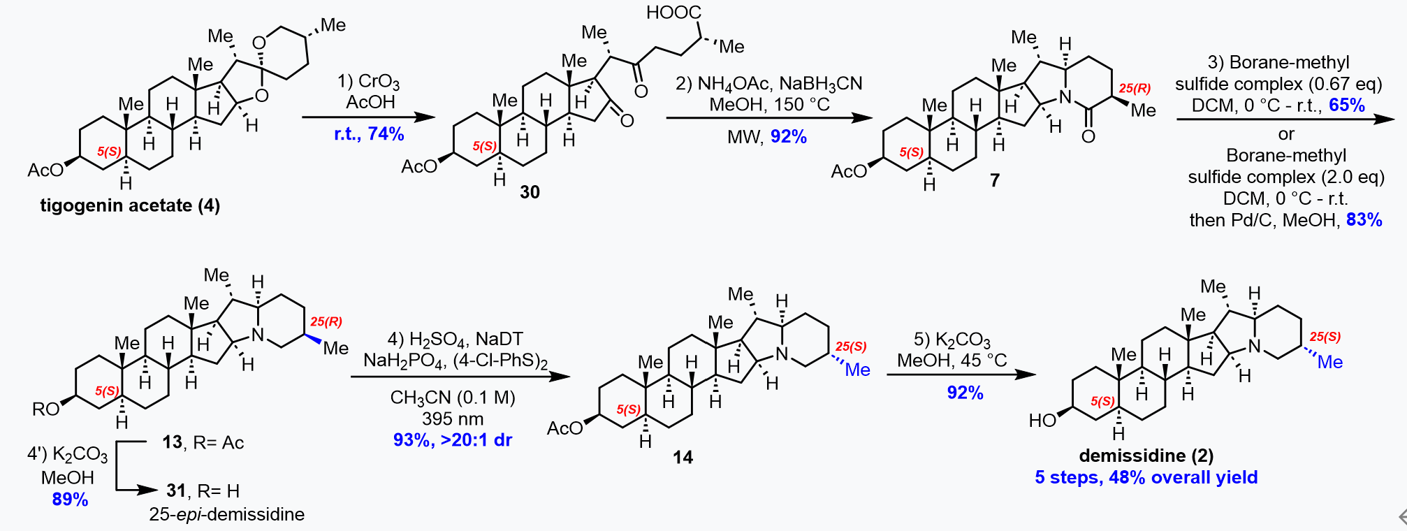图4. 从tigogenin醋酸酯合成地demissidine的五步合成路线